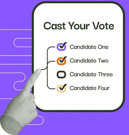 Approval Voting is a single-winner voting method that allows voters to choose as many candidates as they wish. The candidate with the most votes wins.